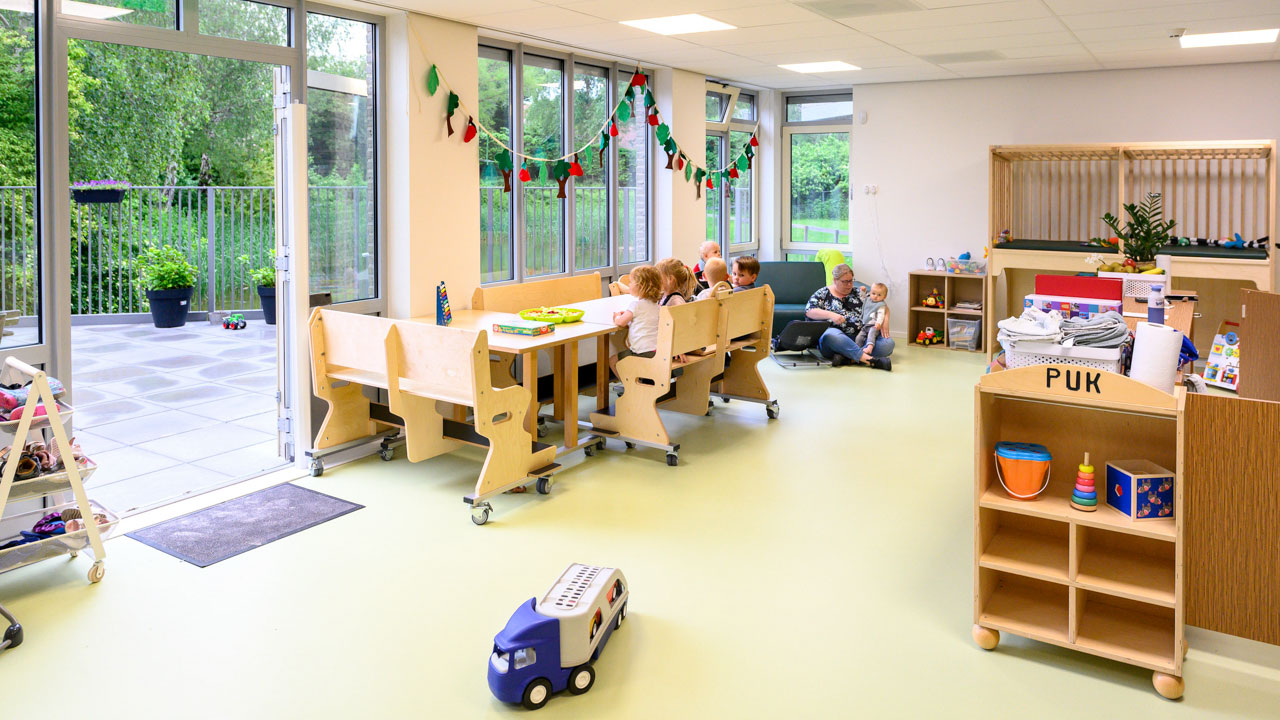 Kinderdagverblijf Het Woud is een kleinschalige, sfeervolle opvanglocatie waar kinderen van 0 tot 4 jaar samen op één groep worden opgevangen. De groep heeft een eigen buitenruimte met volop uitdagend speelmateriaal. Hier kunnen kinderen ontdekken, bewegen en groeien in een veilige en vertrouwde omgeving. We werken met het Voorschoolse Educatie (VE) programma Uk & Puk, dat spelenderwijs de taal- en spraakontwikkeling stimuleert. Zo vergroten we de woordenschat en communicatieve vaardigheden van kinderen. Het programma helpt kinderen een goede start te maken op de basisschool.